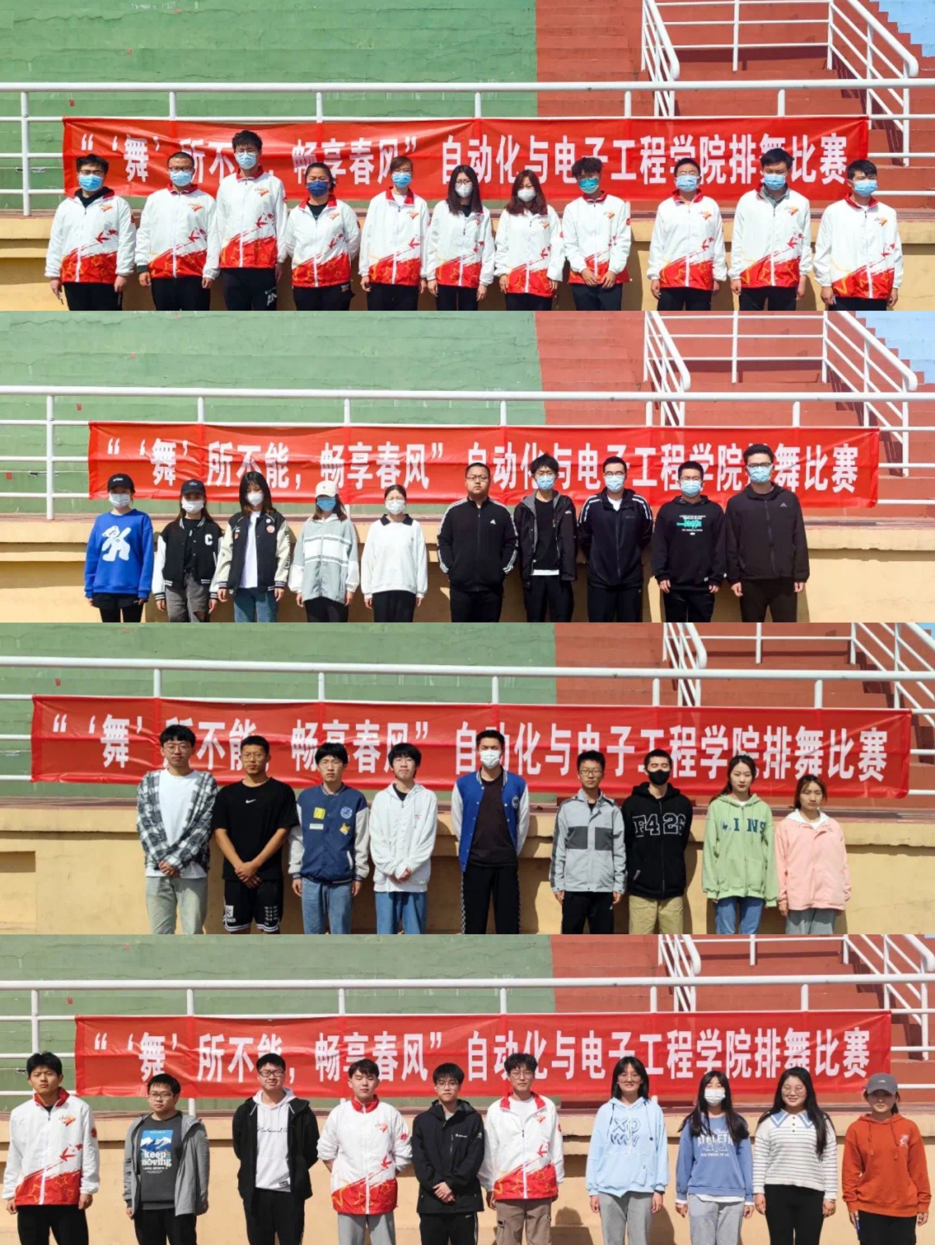 院赛于5月1日上午在崂山校区南苑体育场举办。各班代表队积极备战,历经多日训练,在比赛当天带来了精彩绝伦的表现。参赛同学们精神饱满、信心十足,动作到位、标准有力、活泼灵动,队列整齐划一,给此次活动增添了一道靓丽的风景线,赢得了观众评委的一致好评。经评选,以下班级脱颖而出:自化211、电信212、电气213和电网211。