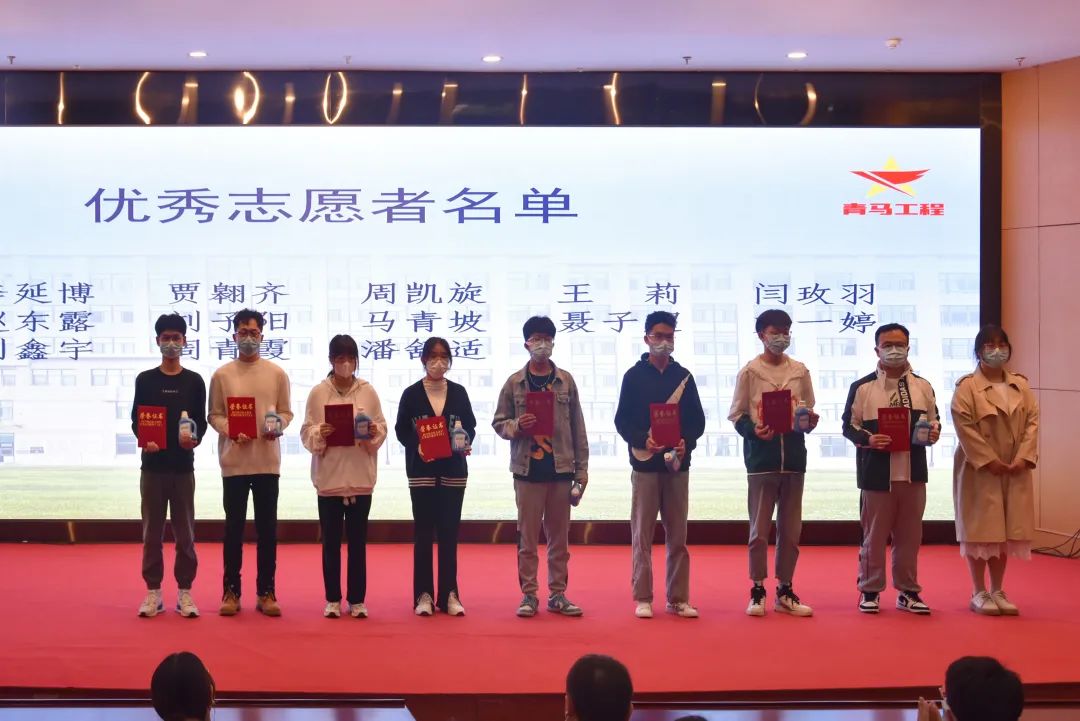 表彰环节中,团委老师张郁浩、安柏雅、赵赪赪为在抗疫志愿服务中表现出色的优秀志愿者颁发荣誉证书。
