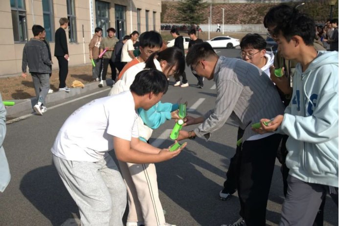 球传递接力项目,以小小白球的传递培养师生间默契合作,让“自”家人更有凝聚力。拼接轨道,小球一往直前,直达终点,“自”家人凝聚起的力量,筑起这前进之路。