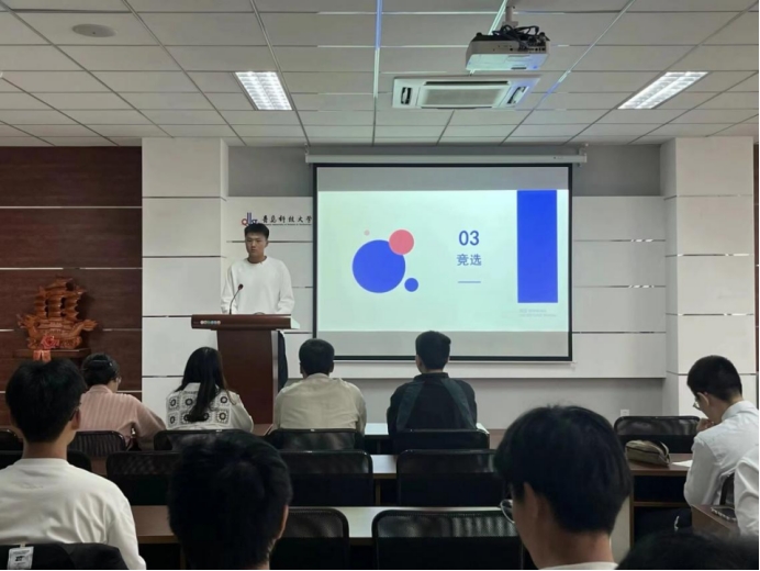 随后,参与此次竞聘的成员依次上台发言,各候选人分别从自身情况、工作思路、未来设想三个方面,分享了自己的感悟,表达了对学生工作的诚心和竭诚为同学服务的决心。