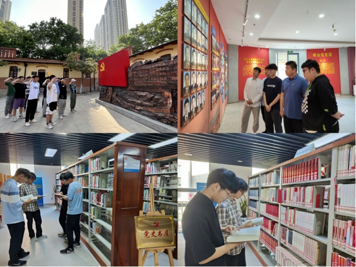 党委本科生第一党支部参观了基本陈列展厅、革命文物精品展等,深入学习青岛党组织奋斗历程和先烈们英雄事迹。师生党员们驻足于一件件历史文献、实物和照片前,在全景式参观中重温那段波澜壮阔的峥嵘岁月,领略革命文物的历史底蕴,感悟先辈革命精神。在党旗前,全体党员庄严重温入党誓词,铿锵有力的誓言是同志们对先辈的承诺。在崂山区党史馆和党史书屋,师生们共同围读《习近平著作选读》、《习近平谈治国理政》等书籍,全面学习领会习近平新时代中国特色社会主义思想的科学体系、核心要义、实践要求。同时,带着理论学习的收获体会深入实践,在崂山区党史馆重温了邓恩铭、李蔚农等革命先辈的党史清廉故事,从一件件珍贵的史料中再次见证了青岛党组织苦难辉煌、波澜壮阔的奋斗历程,体悟青岛地区共产党人不忘初心、践行使命的伟大精神。青年党员范家兴表示,主题研学活动创新了“沉浸式”学习形式,“激活”了青年党员们的红色基因,在研学过程中学子们满怀激动与敬佩之情。作为新时代青年应当牢记历史使命,勇担时代责任,珍惜先辈们的革命成果,为实现中华民族伟大复兴而努力奋斗。