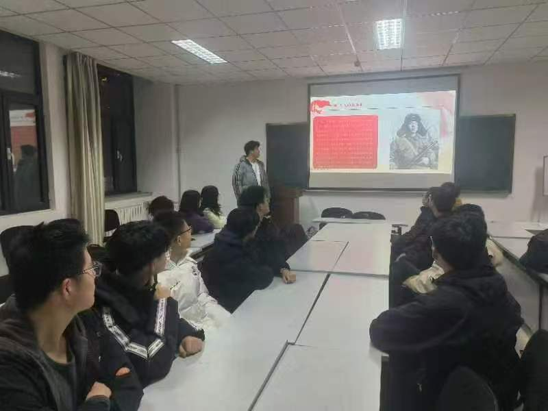 活动伊始,团支部通过精心筹备的多媒体课件,带领同学们开启红色之旅。大屏幕上,珍贵的历史影像、详实的文献资料与生动的讲解相结合,全景呈现了革命先辈们在峥嵘岁月中坚守理想、奋勇拼搏的感人历程。从五四运动的呐喊到长征路上的坚毅,从抗日战争的烽火到新时代的伟大变革,一段段波澜壮阔的历史让同学们目不暇接,不时提笔记录关键信息,深切感悟红色精神的时代内涵。